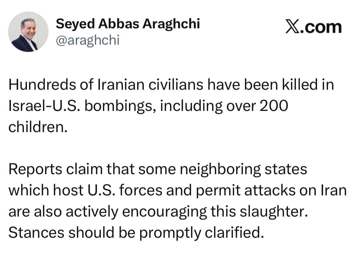 كتب وزير الخارجية الايراني "عباس عراقجي" مساء امس السبت في منشور له على منصة "اكس":