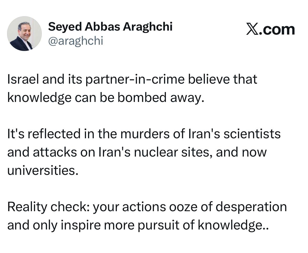 وزير الخارجية السيد عباس عراقجي يعلق على قصف الجامعات من قبل أمريكا وإسرائيل؛