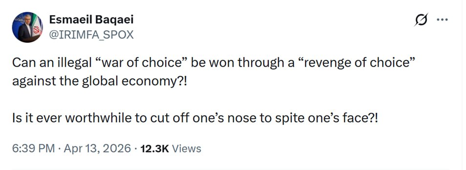 رد المتحدث باسم وزارة الخارجية، إسماعيل بقائي، عبر منصة إكس، على التحركات الأمريكية في الخليج الفارسي والتهديدات بفرض حصار على مضيق هرمز، وكتب: